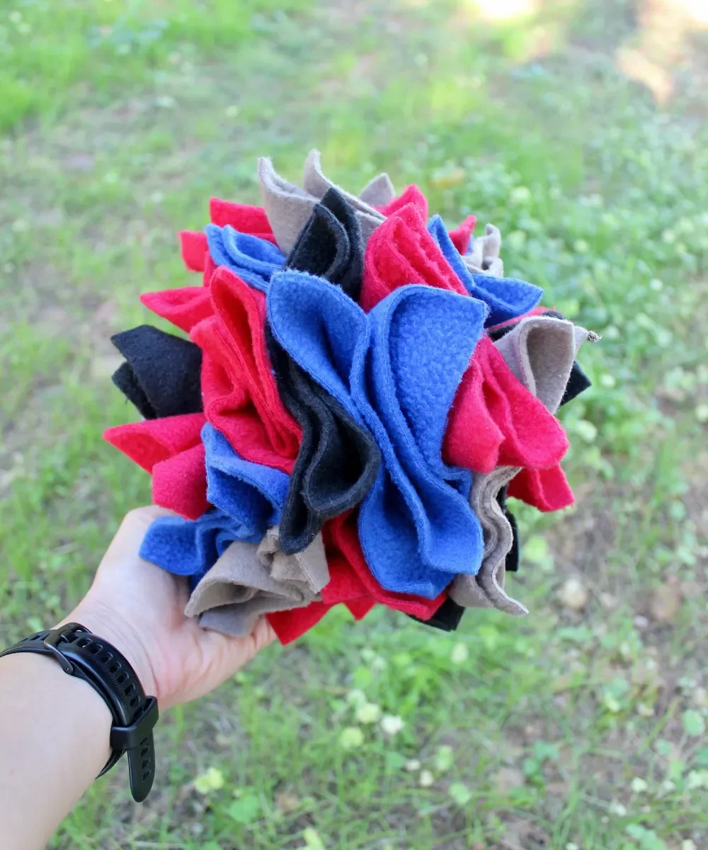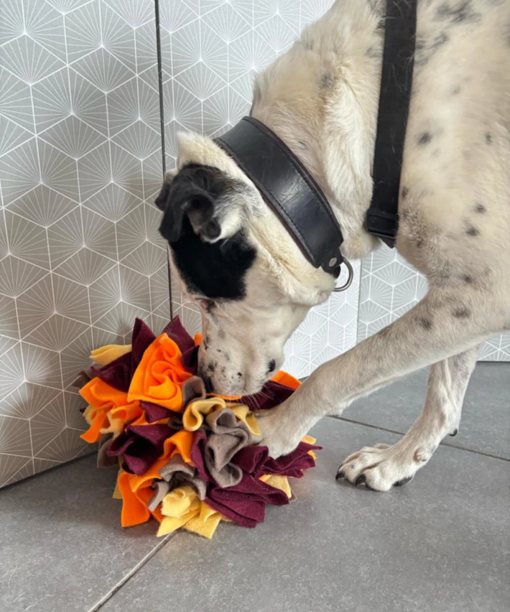 Offrez à votre compagnon un moment de jeu stimulant pour l’esprit et apaisant grâce à la balle Fleur de fouille pour chien, un jouet d’enrichissement artisanal pensé pour stimuler l’odorat, réduire l’ennui et favoriser la concentration.