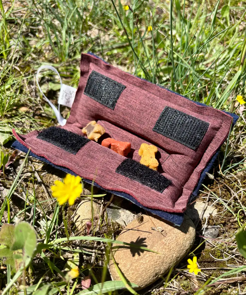 Conçu de manière artisanale à partir de matières résistantes et imperméables, le Clam pour chien peut être utilisé par tous les temps. Il résiste aux mâchouilles tout en restant doux pour les dents et les gencives. Son design en boudin fermé par un scratch protège les friandises et encourage une recherche progressive. Léger et compact, il s’adapte à tous les environnements : maison, jardin ou séance d’entraînement.