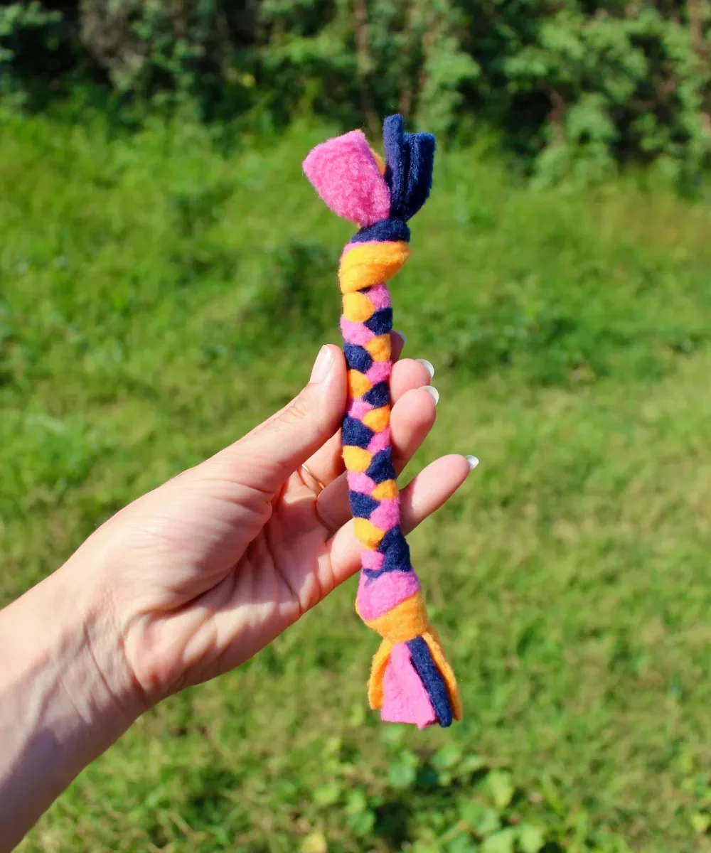 Cette mini tresse en tissu fabriquée en France est spécialement conçue pour les chiens à petites mâchoires. Douce et solide, elle stimule l’attention de votre compagnon et permet des moments de jeu à deux.